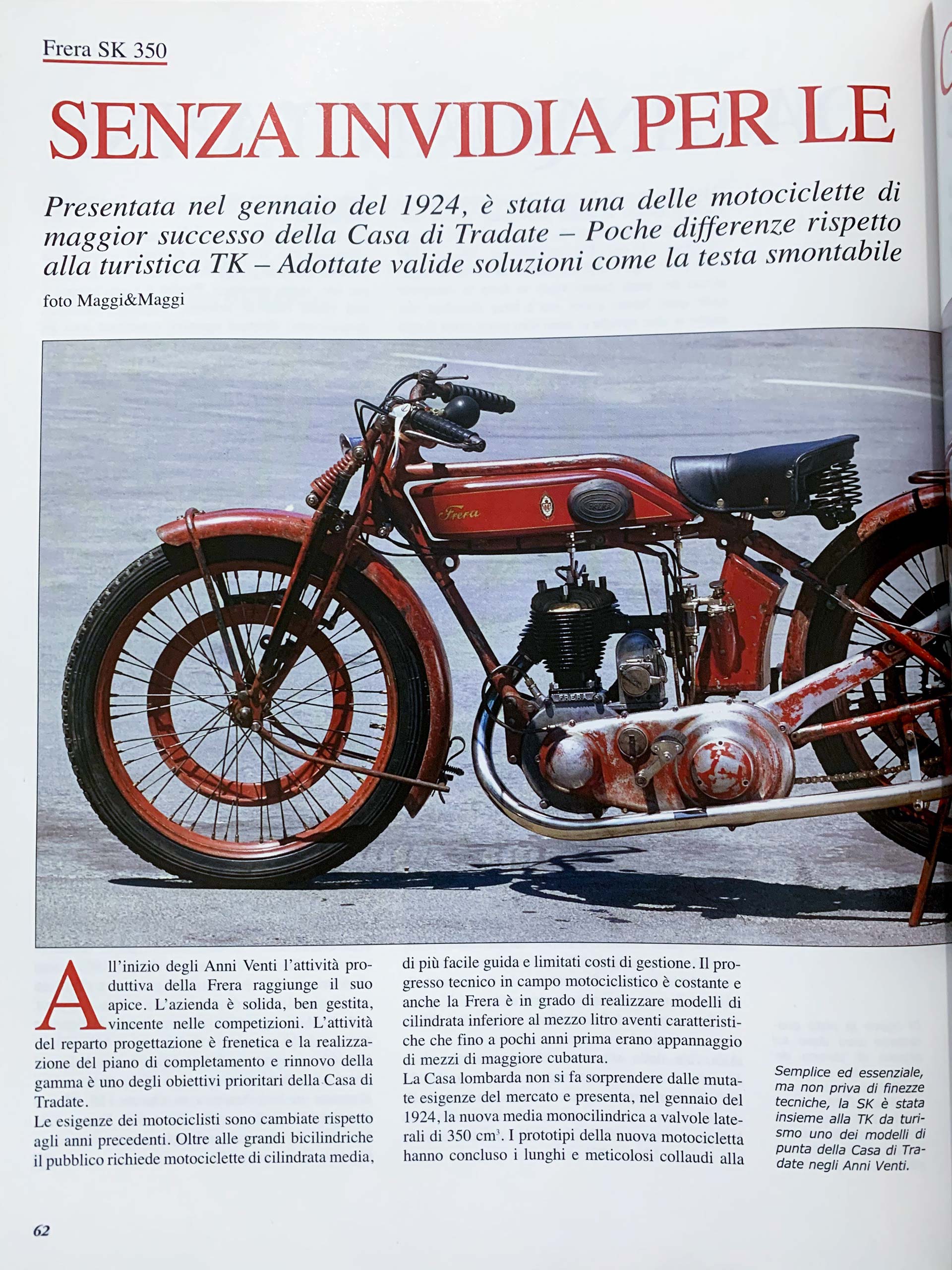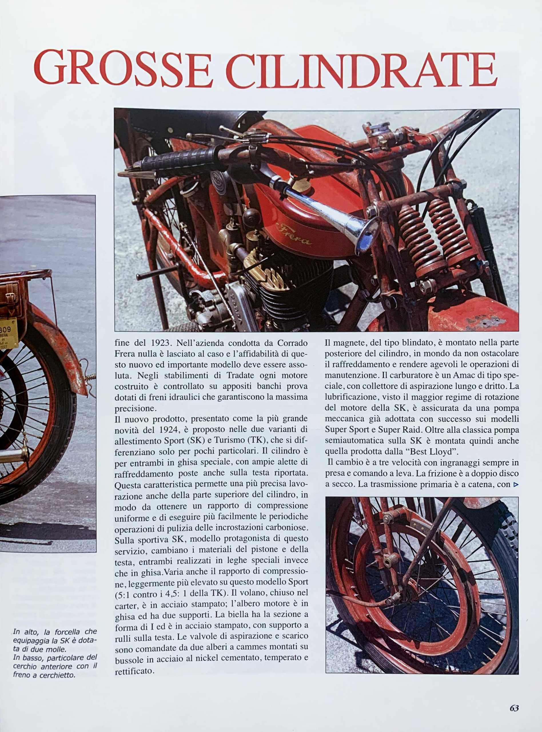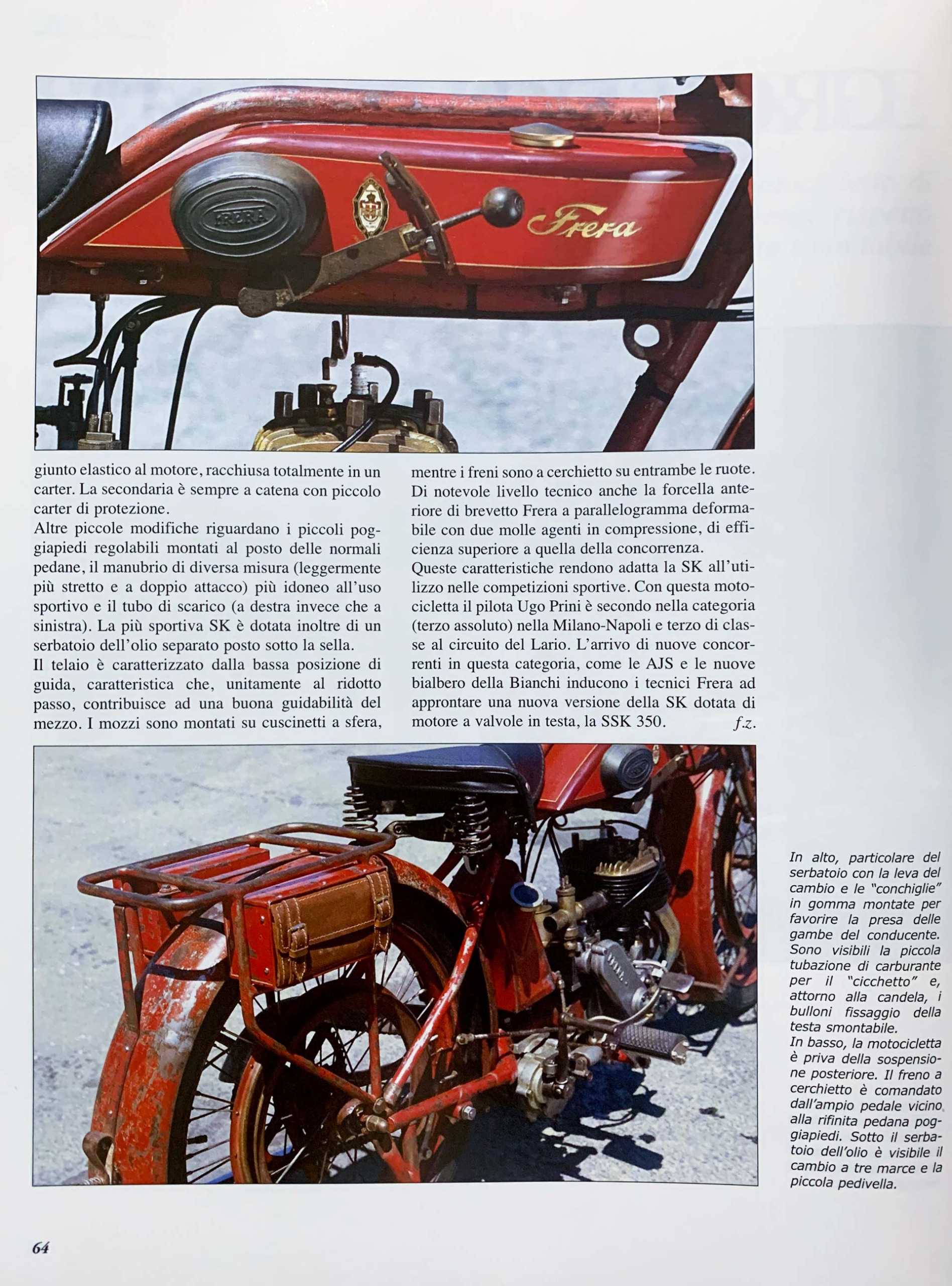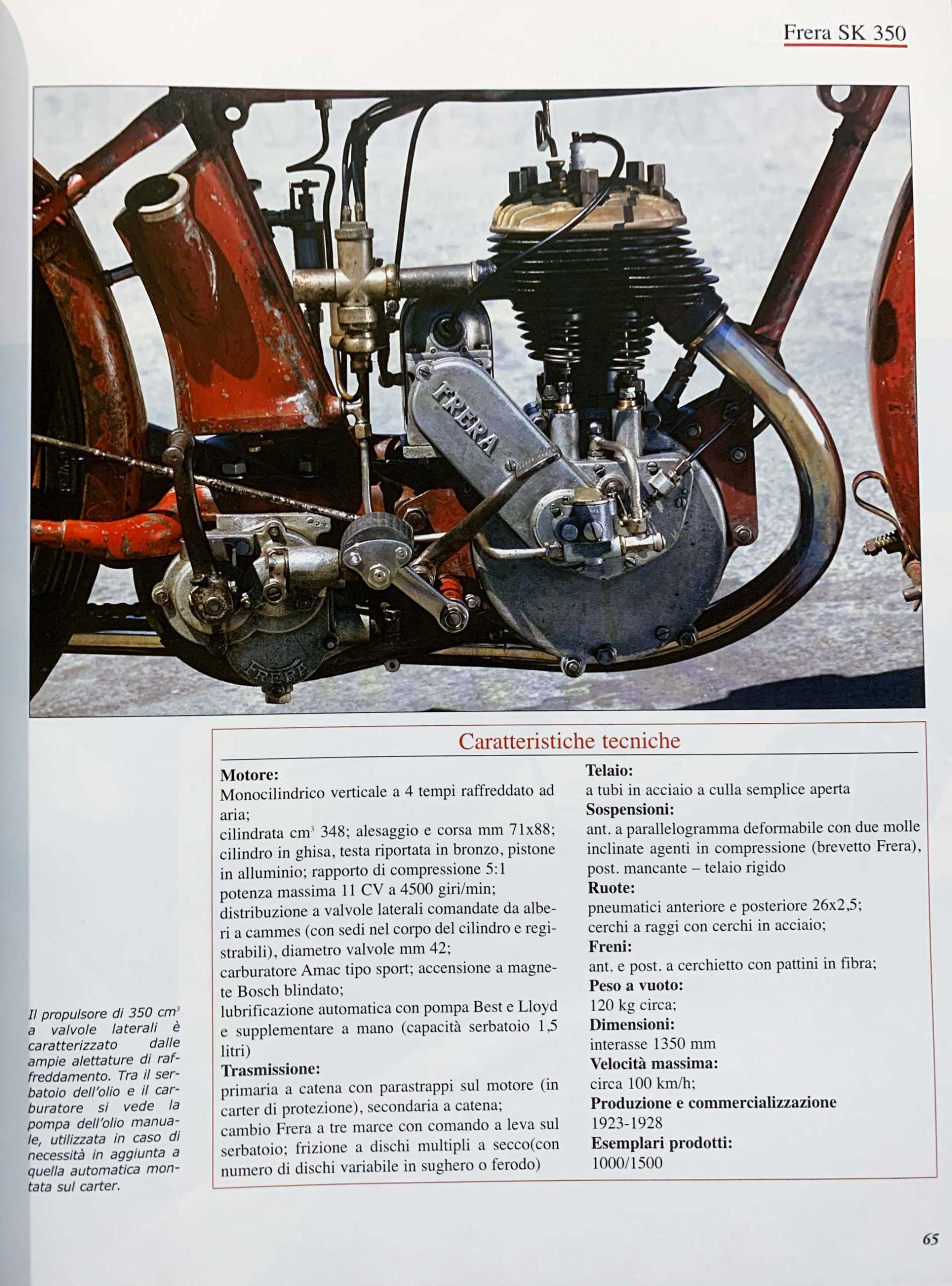 La Frera SK 350 viene prodotta e venduta nel 1921, ma solo nel 1927, quando cambieranno le leggi in materia di circolazione, dovrà essere targata.