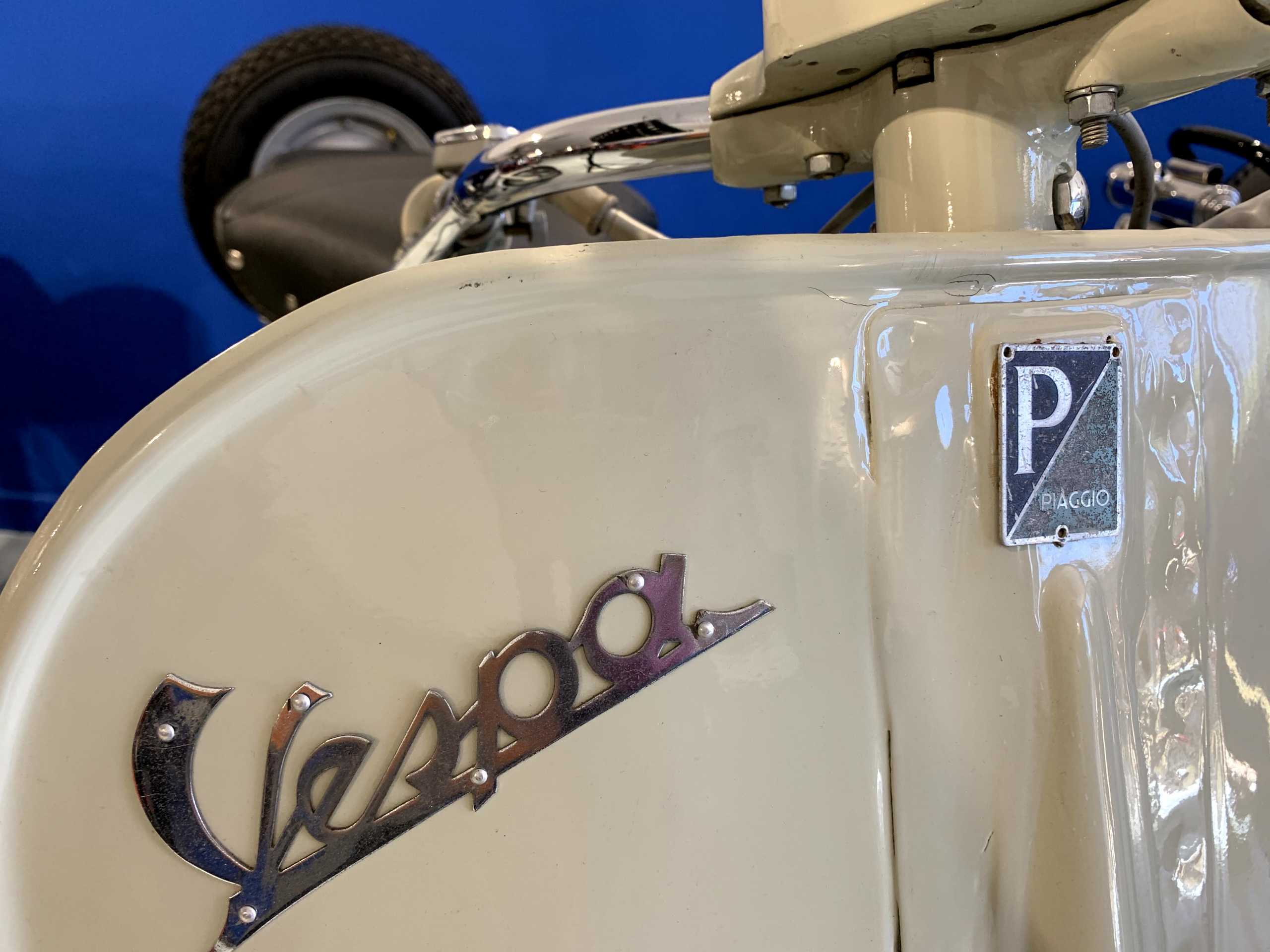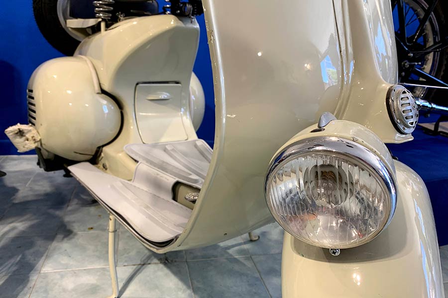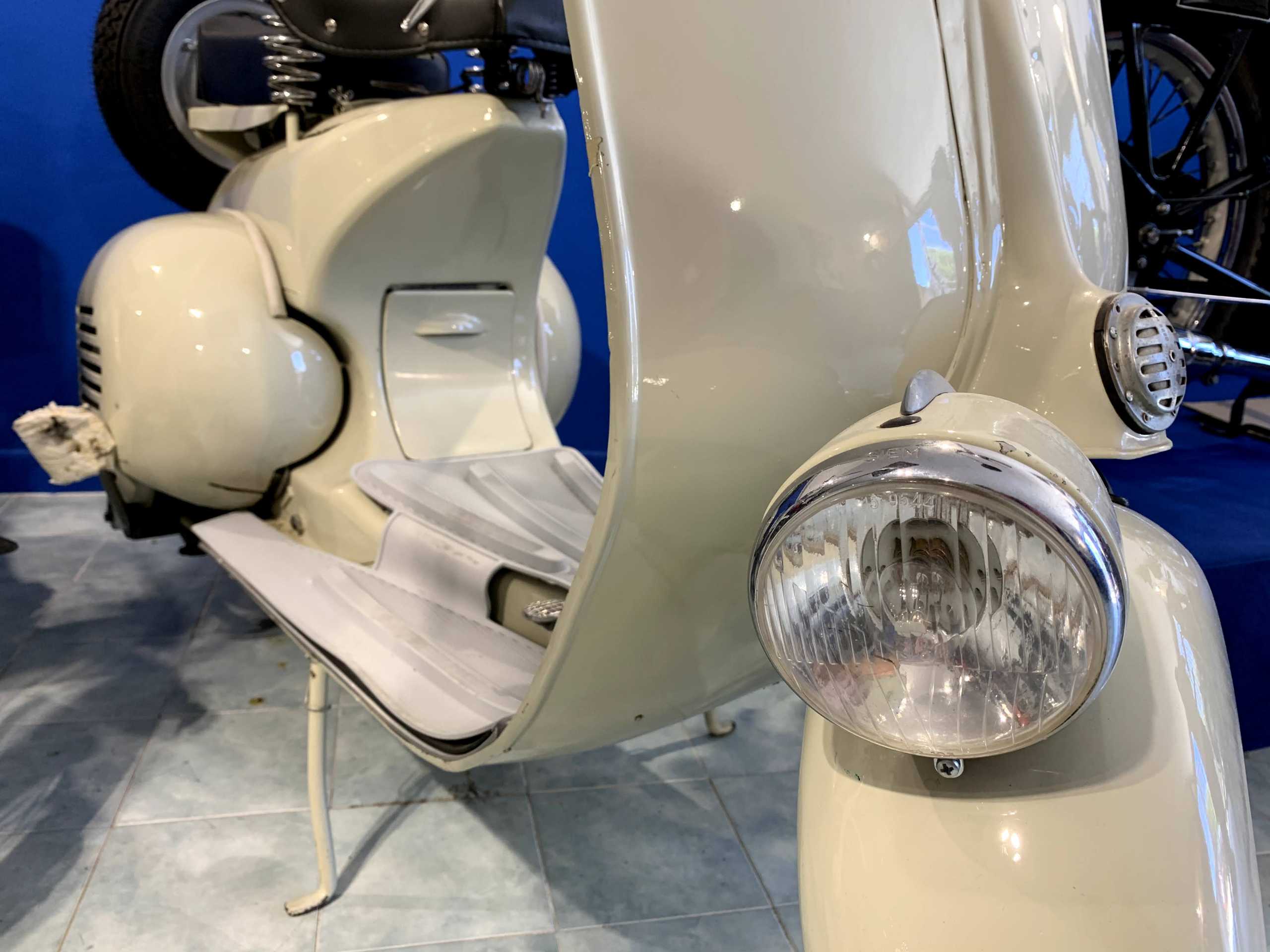 La Vespa “farobasso” fu prodotta dal 1946 al 1948 e si caratterizzava appunto per il fanale che anziché sullo sterzo stava sul parafango anteriore.